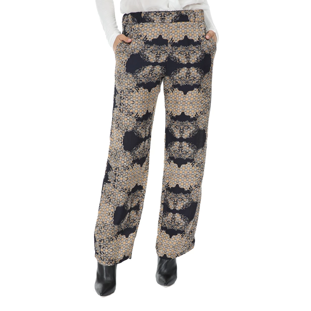 Γυναικείο παντελόνι σε μαύρο και μπεζ χρώμα με μοτίβο. Είναι ψηλόμεσο σε αέρινη γραμμή. Διαθέτει δύο τσέπες στα πλάγια και δύο τσέπες πίσω.