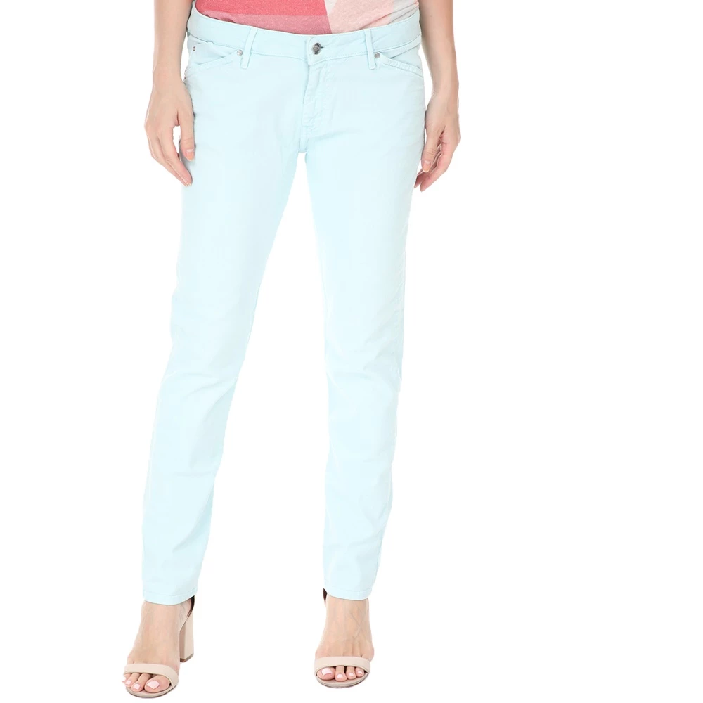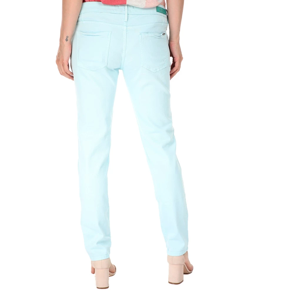 Γυναικείο βαμβακερό παντελόνι με slim γραμμή σε γαλάζια απόχρωση.