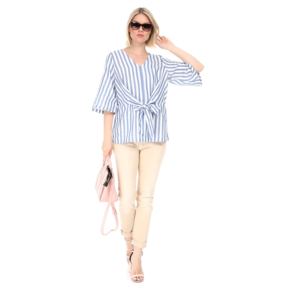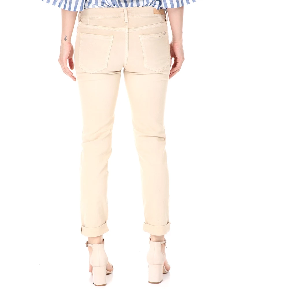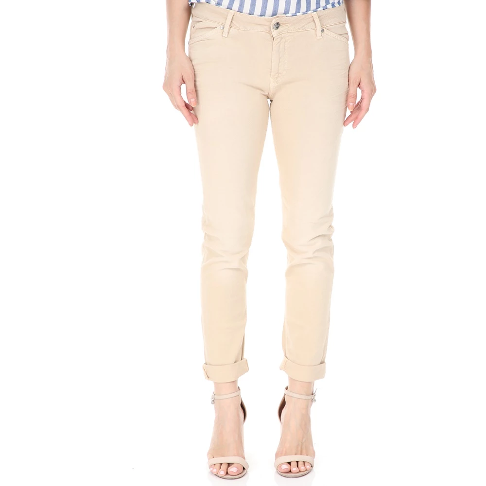 Γυναικείο βαμβακερό παντελόνι με slim γραμμή σε μπεζ απόχρωση.