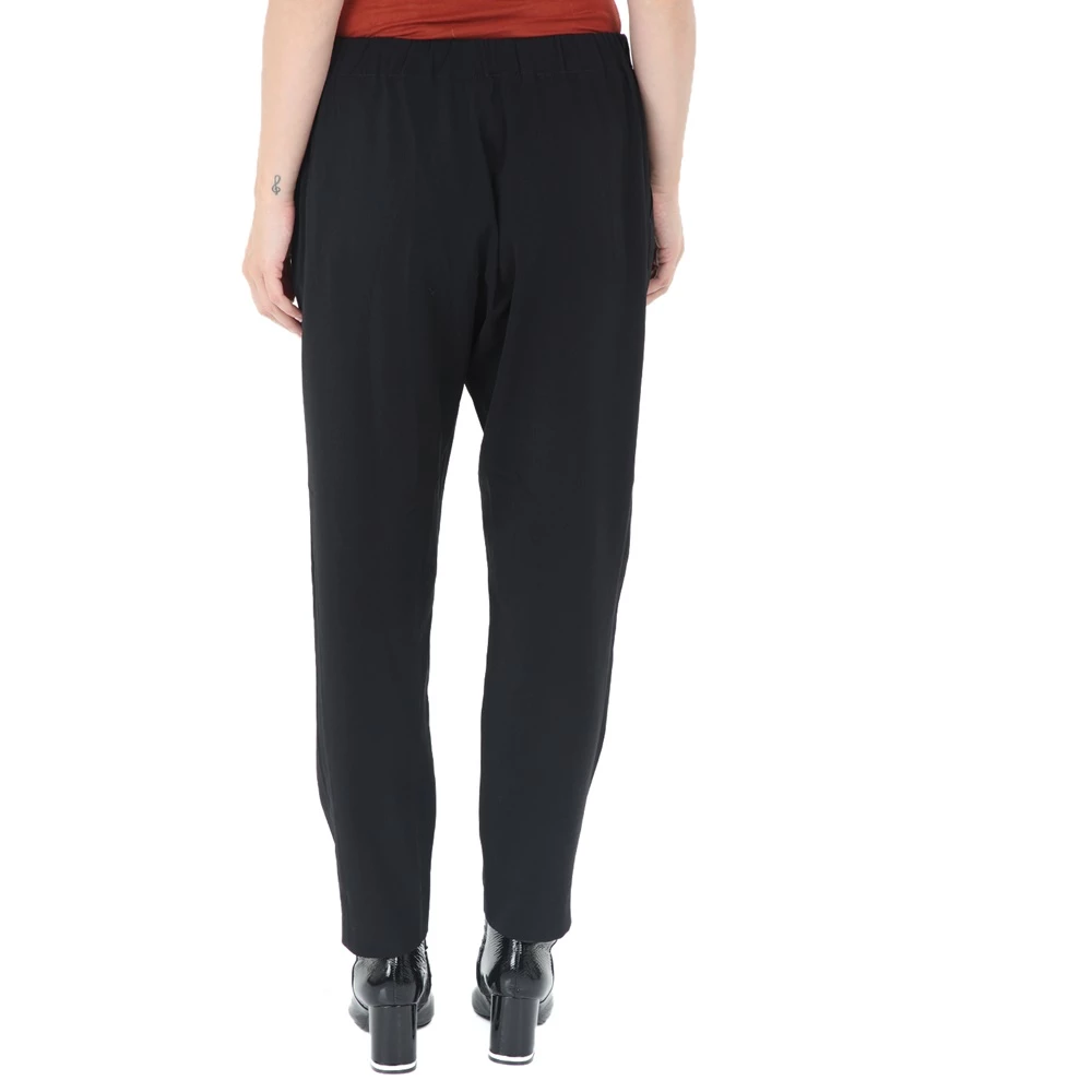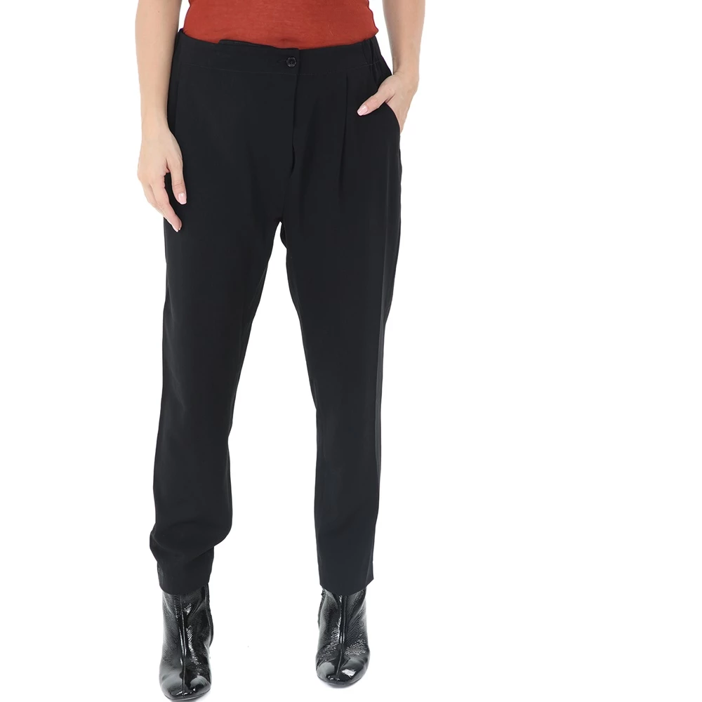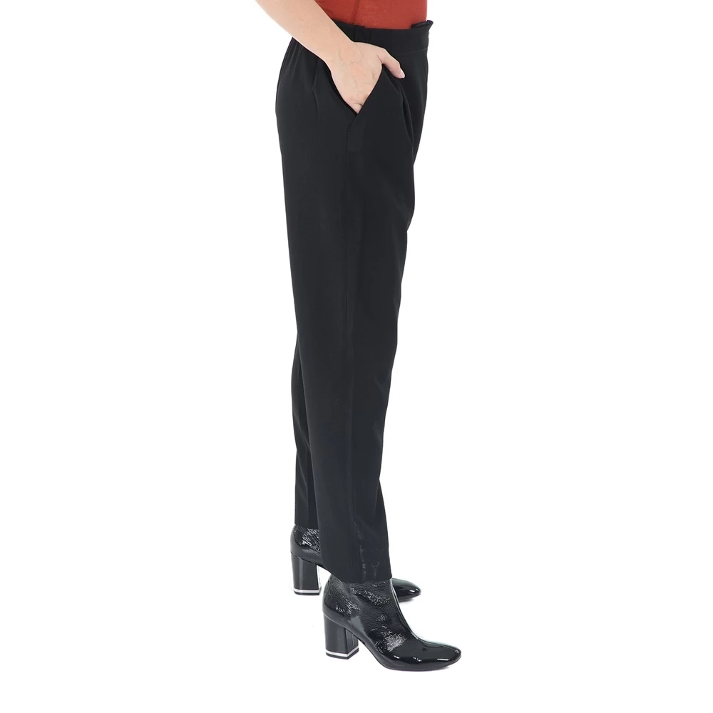 Γυναικείο παντελόνι REIKO σε μαύρο χρώμα. Είναι ψηλόμεσο σε ίσια γραμμή, με πιέτες μπροστά. Διαθέτει δύο τσέπες στα πλάγια και δύο τσέπες πίσω. Κλείνει με φερμουάρ μπροστά.