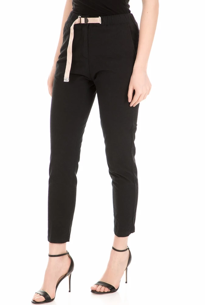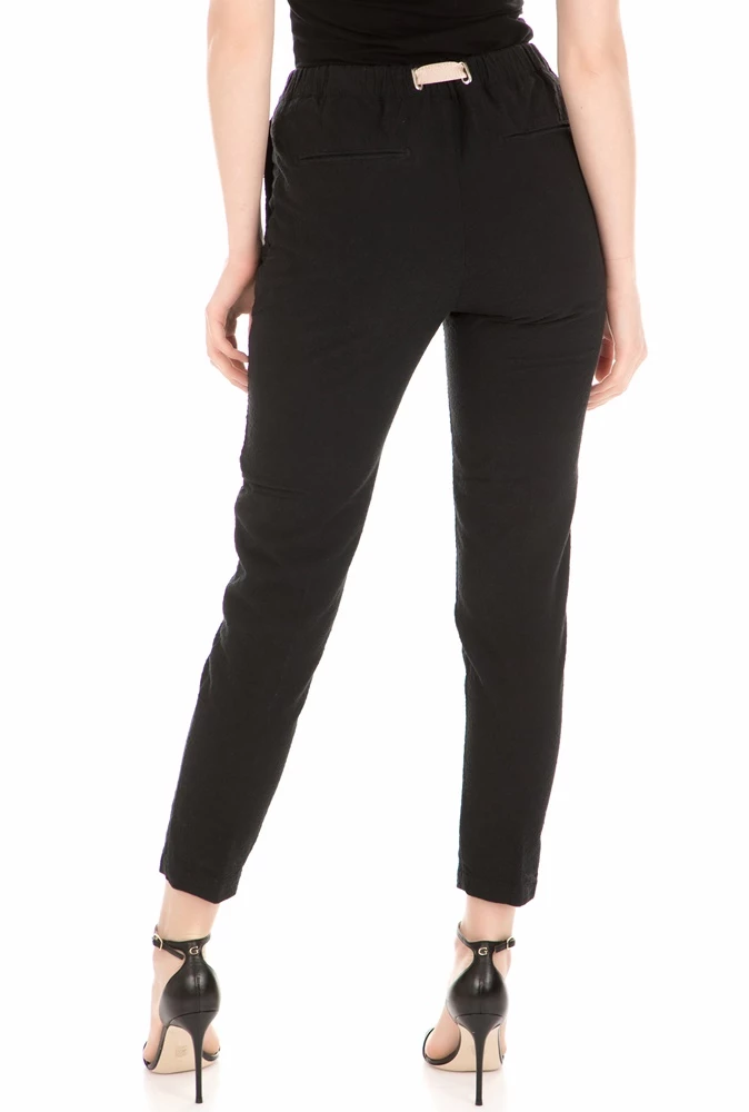Βαμβακερό ψηλόμεσο παντελόνι σε μαύρη απόχρωση, με ζώνη στη μέση με λάστιχο, στενή γραμμή και τσέπες.