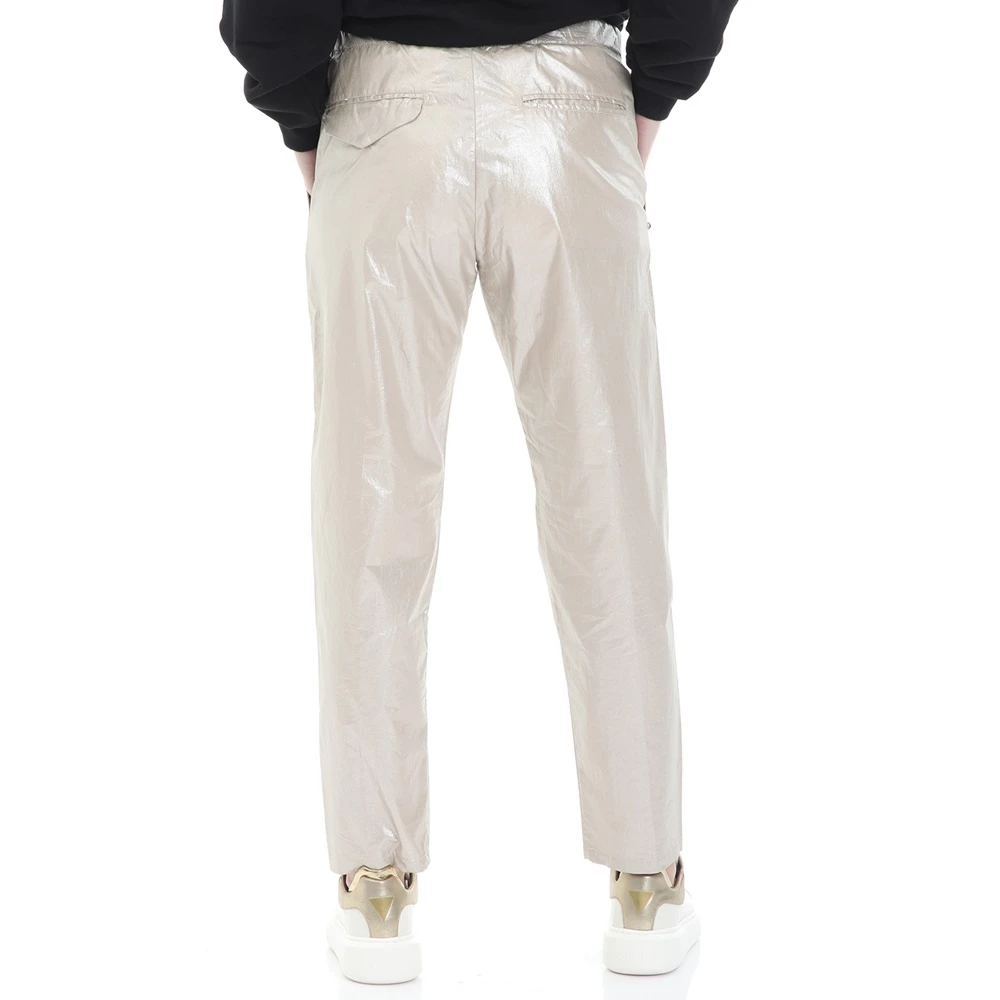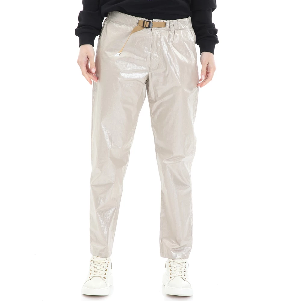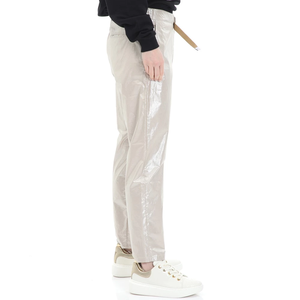 Γυναικείο παντελόνι WHITE SAND σε μπεζ απόχρωση, με κερωμένη όψη. Σε ίσια γραμμή, με μήκος πάνω από τον αστράγαλο. Διαθέτει υφασμάτινη ζώνη στη μέση, δύο τσέπες στα πλάγια και κλείνει με κουμπί και φερμουάρ μπροστά.