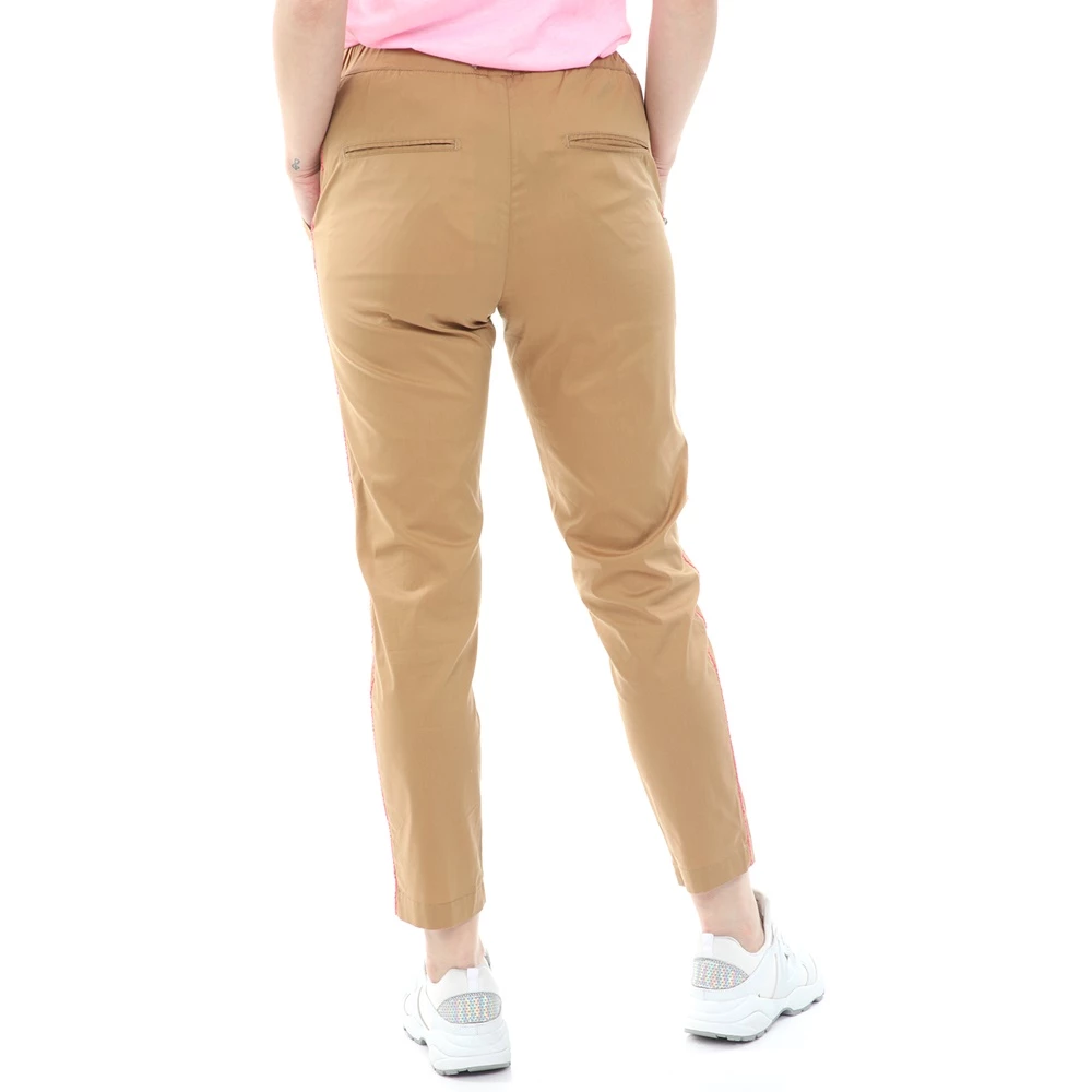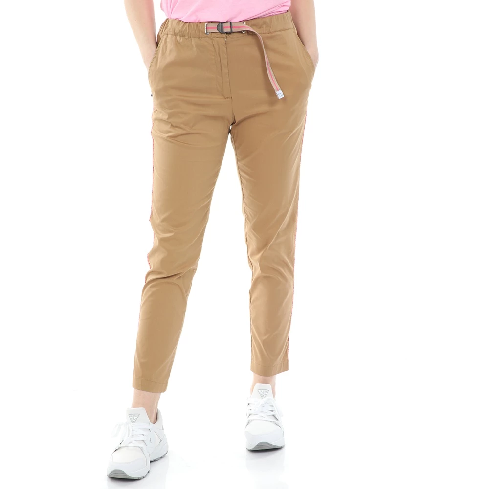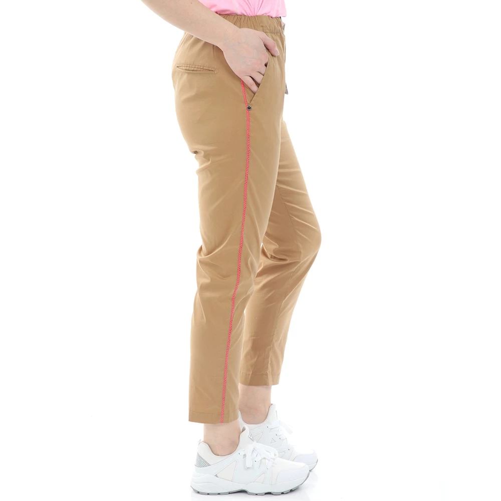 Γυναικείο παντελόνι WHITE SAND σε μπεζ απόχρωση. Σε γραμμή chino, με slim εφαρμογή και μήκος πάνω από τον αστράγαλο. Διαθετει λάστιχο με υφασμάτινη ζώνη στη μέση, δύο τσέπες στα πλάγια και δύο τσέπες πίσω. Κλείνει με μεταλλική αγκράφα και φερμουάρ μπροστά.