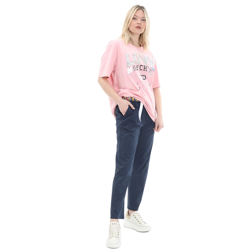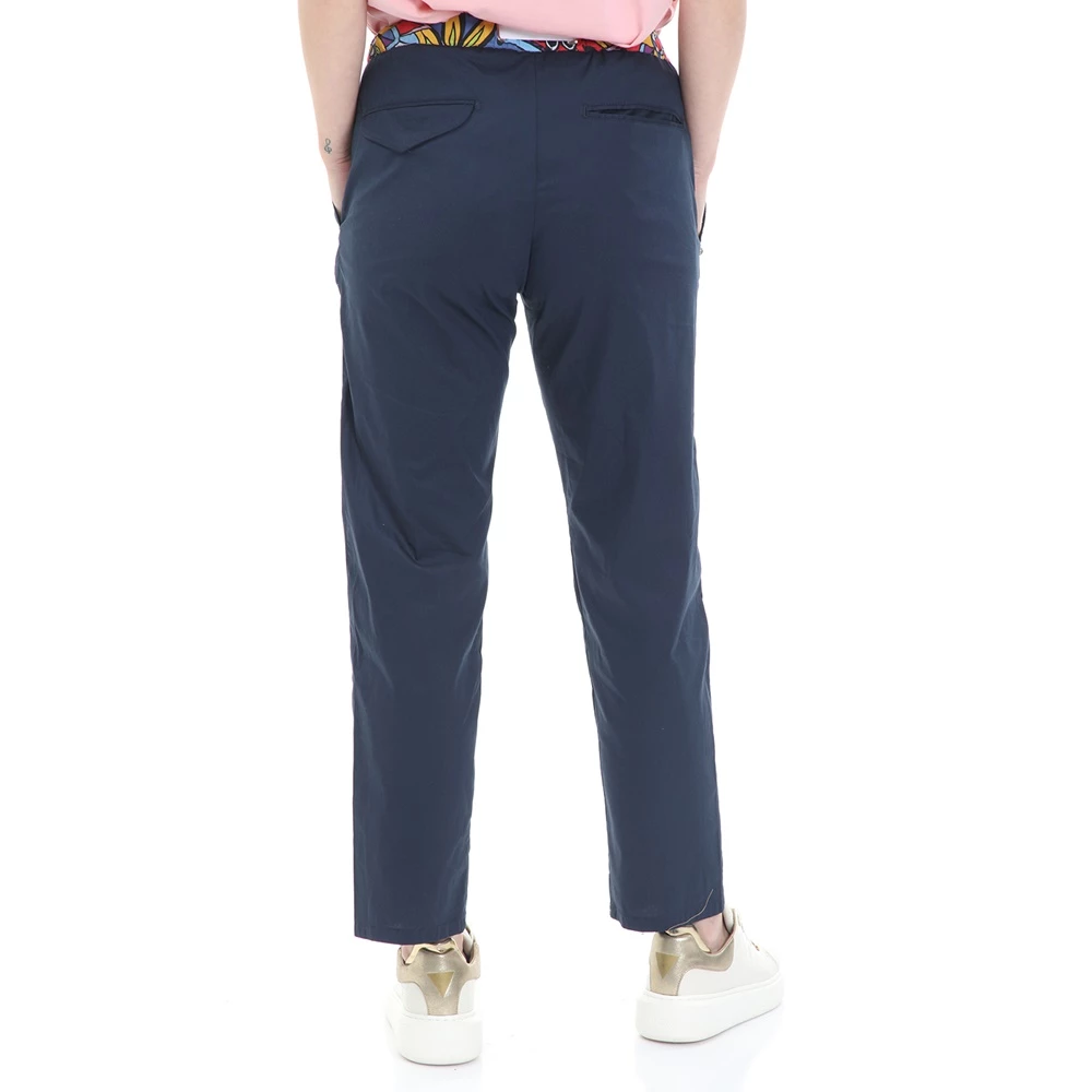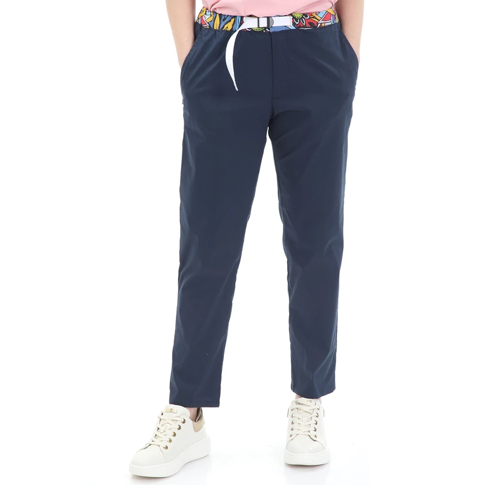 Γυναικείο παντελόνι WHITE SAND σε μπλε απόχρωση. Σε ίσια και άνετη γραμμή, με μήκος πάνω από τον αστράγαλο. Διαθέτει υφασμάτινη ζώνη στη μέση, δύο τσέπες στα πλάγια και κλείνει με κουμπί και φερμουάρ μπροστά.