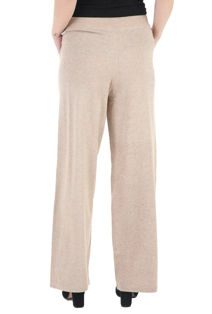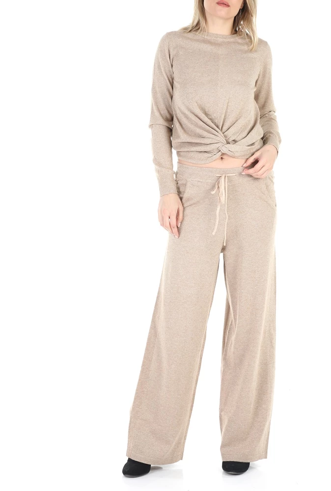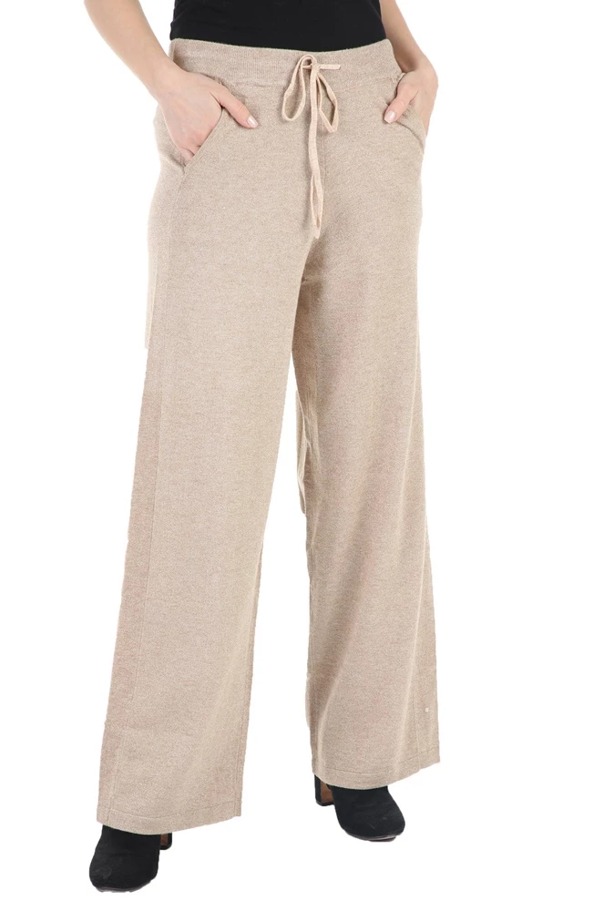 Γυναικείο πλεκτό παντελόνι σε μπεζ απόχρωση, ίσια γραμμή και λάστιχο στη μέση με κορδόνι. Άνετο κομμάτι για καθημερινές εμφανίσεις.