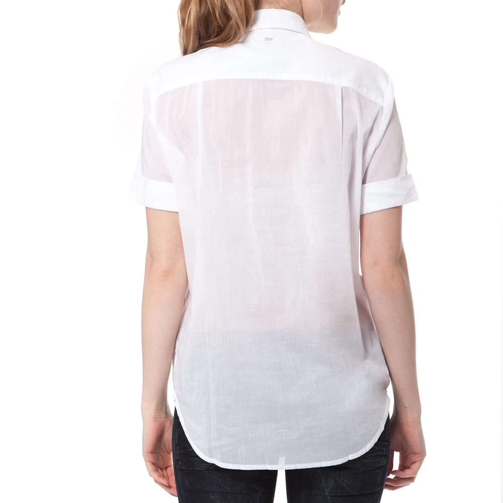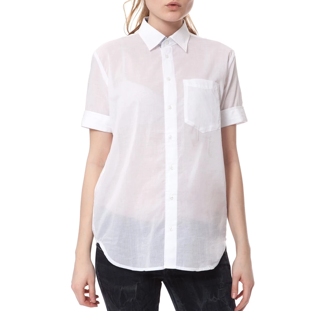 Ημιδιάφανο κοντομάνικο πουκάμισο σε boyfriend γραμμή με τσέπη στο μπροστινό μέρος.