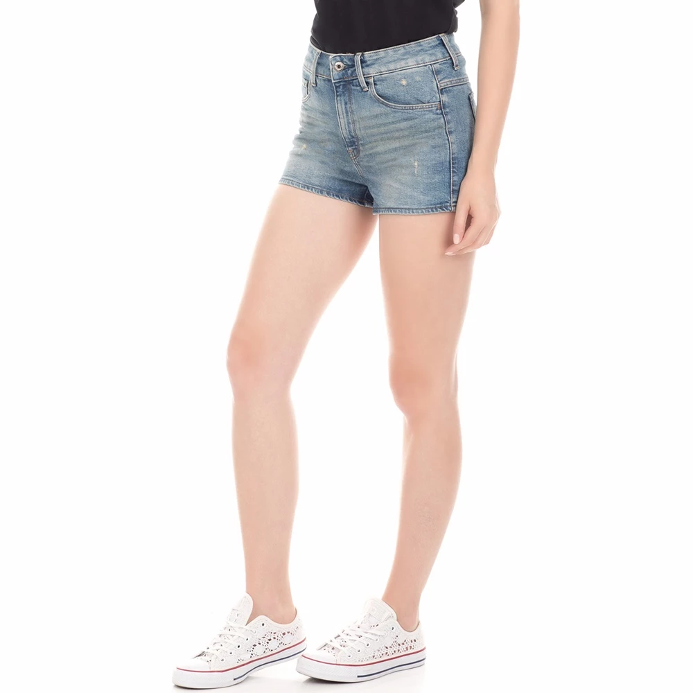 Ψηλόμεσο τζιν σορτς σε μπλε απόχρωση με ξεβάμματα και κλασική γραμμή. Must κομμάτι για τις καλοκαιρινές σου εμφανίσεις!
