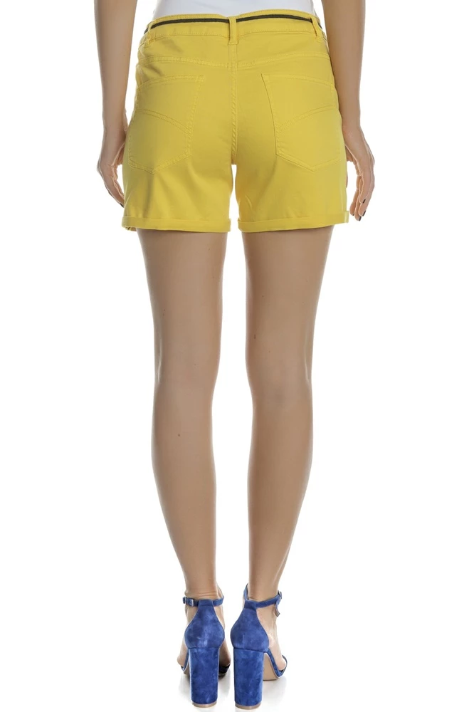 Γυναικείο σορτς σε κίτρινη απόχρωση. Έχει κανονική γραμμή, πλαϊνές τσέπες και κλείσιμο με φερμουάρ και κουμπί. Basic κομμάτι για τη καλοκαιρινή σου γκαρνταρόμπα.