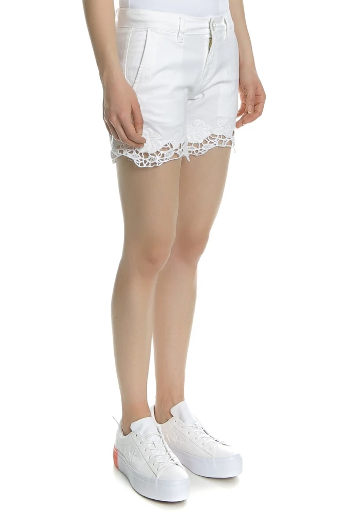 Γυναικείο σορτς Guess σε λευκό χρώμα. Το τελείωμα από δαντέλα το κάνει ακόμα πιο girly. Ιδανικό για τις καλοκαιρινές σου βόλτες από το πρωί μέχρι το βράδυ.