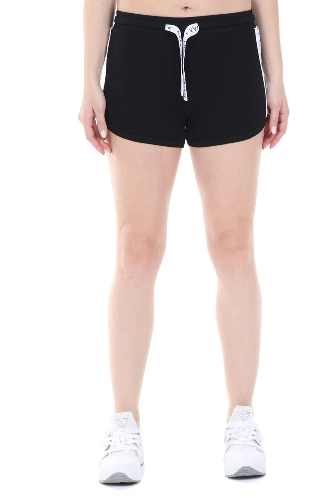 Γυναικείο σορτς KENDALL + KYLIE σε μαύρο χρώμα. Διαθέτει λευκές φάσες με το λογότυπο στα πλάγια και λάστιχο με κορδόνι στη μέση.