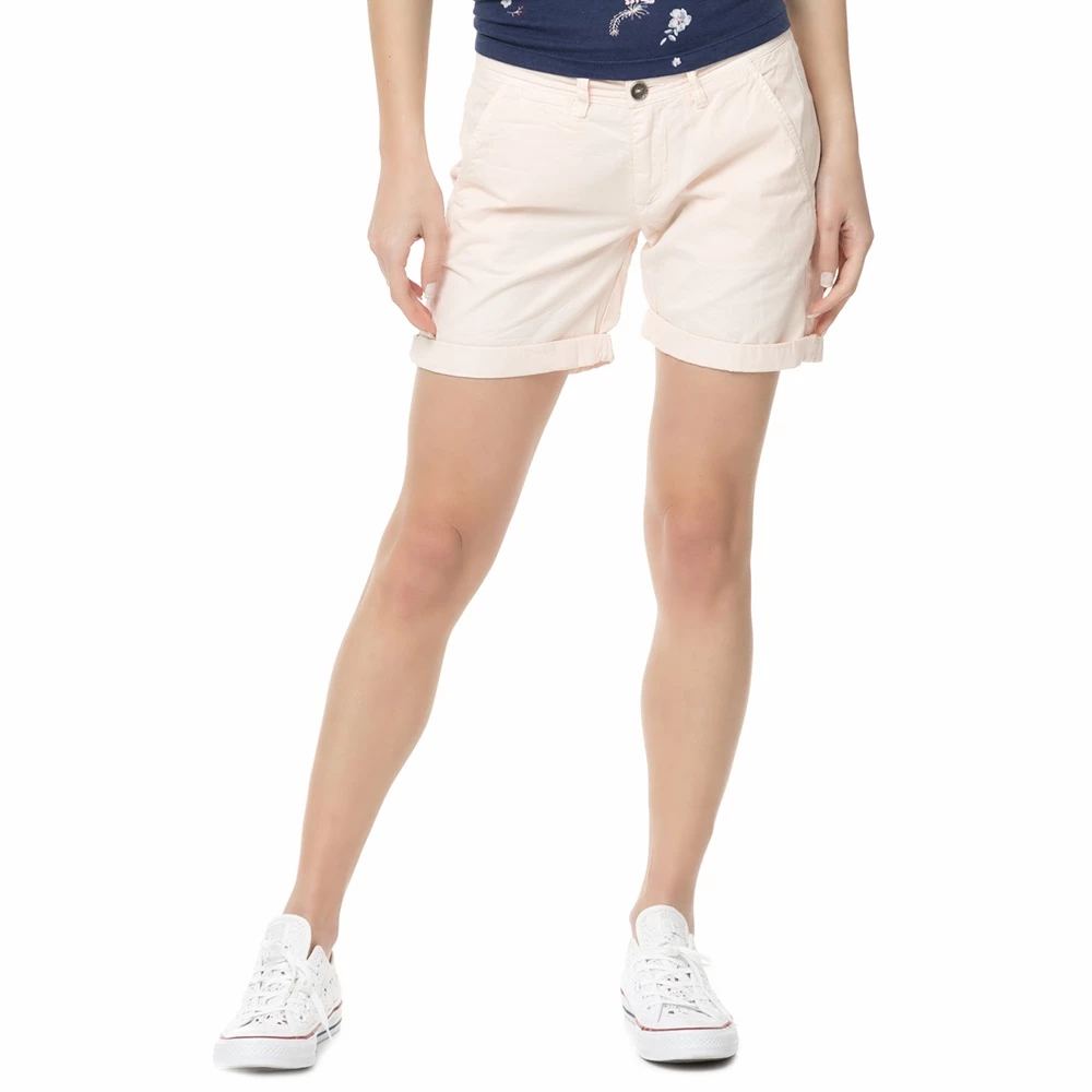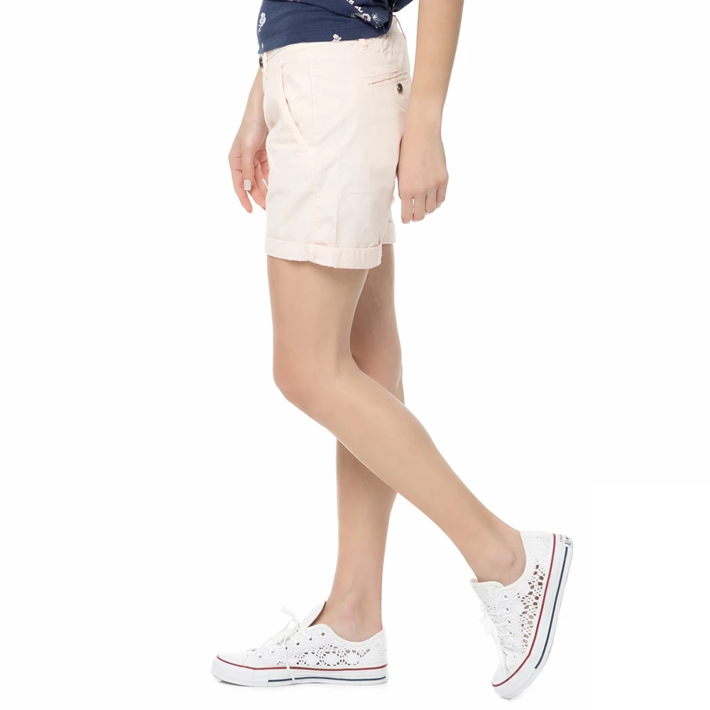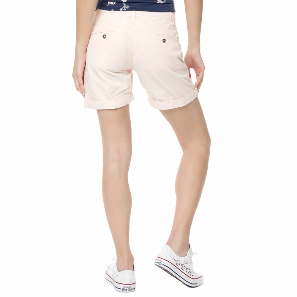 Γυναικείο σορτς σε απαλό ροζ χρώμα, chino γραμμή και γυρισμένο ρεβέρ. Κλασικό κομμάτι που θα φορέσεις όλη μέρα!