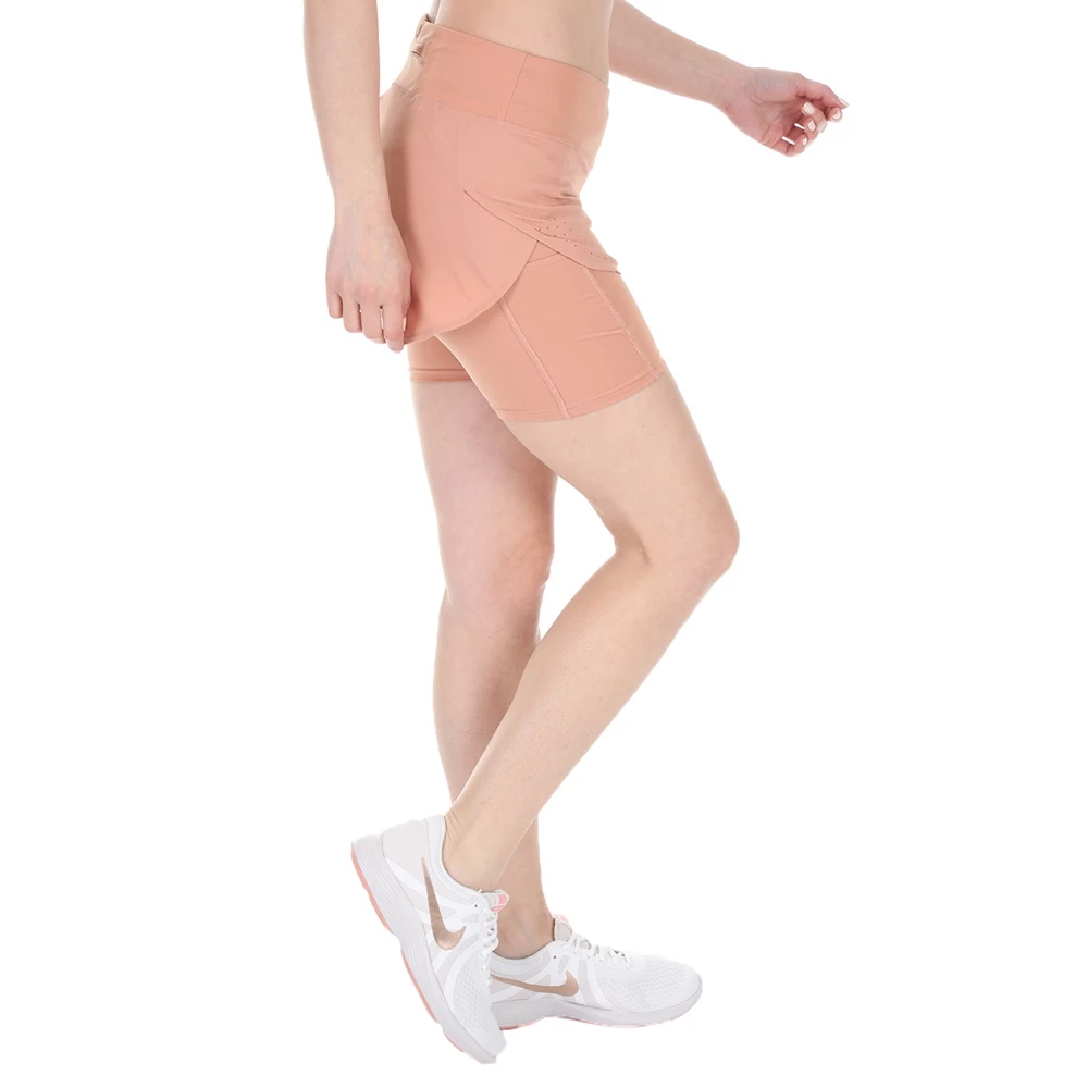 Γυναικείο σορτς 2 σε 1 από τη NIKE σε ροζ απόχρωση. Σορτς από ανάλαφρο ύφασμα, με λάστιχο στη μέση και μία τσέπη με φερμουάρ πίσω. Ανοίγματα στη βάση για μεγαλύτερη ελευθερία κατά την κίνηση. Εσωτερικό κολάν για μεγαλύτερη κάλυψη.