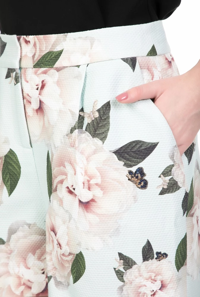 Γυναικείο ψηλόμεσο σορτς σε πράσινη mint απόχρωση με ροζ φλοράλ σχέδιο. Ιδιαίτερα ρομαντικό και προσθέτει έναν νοσταλγικό τόνο σε κάθε σας εμφάνιση.