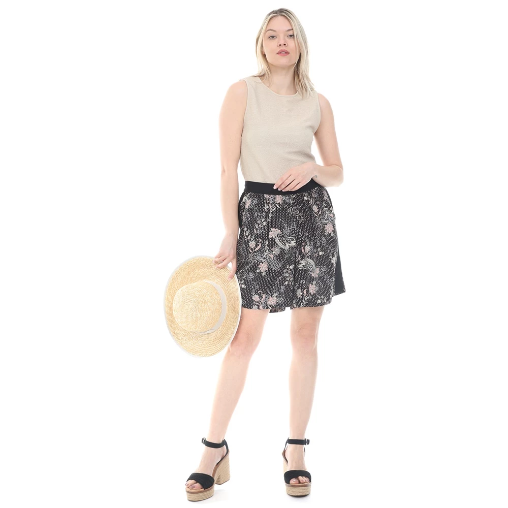 Γυναικείο σορτς NU σε μαύρο χρώμα, με λευκό πουά και floral μοτίβο. Διαθέτει δύο τσέπες στα πλάγια και λάστιχο στη μέση.