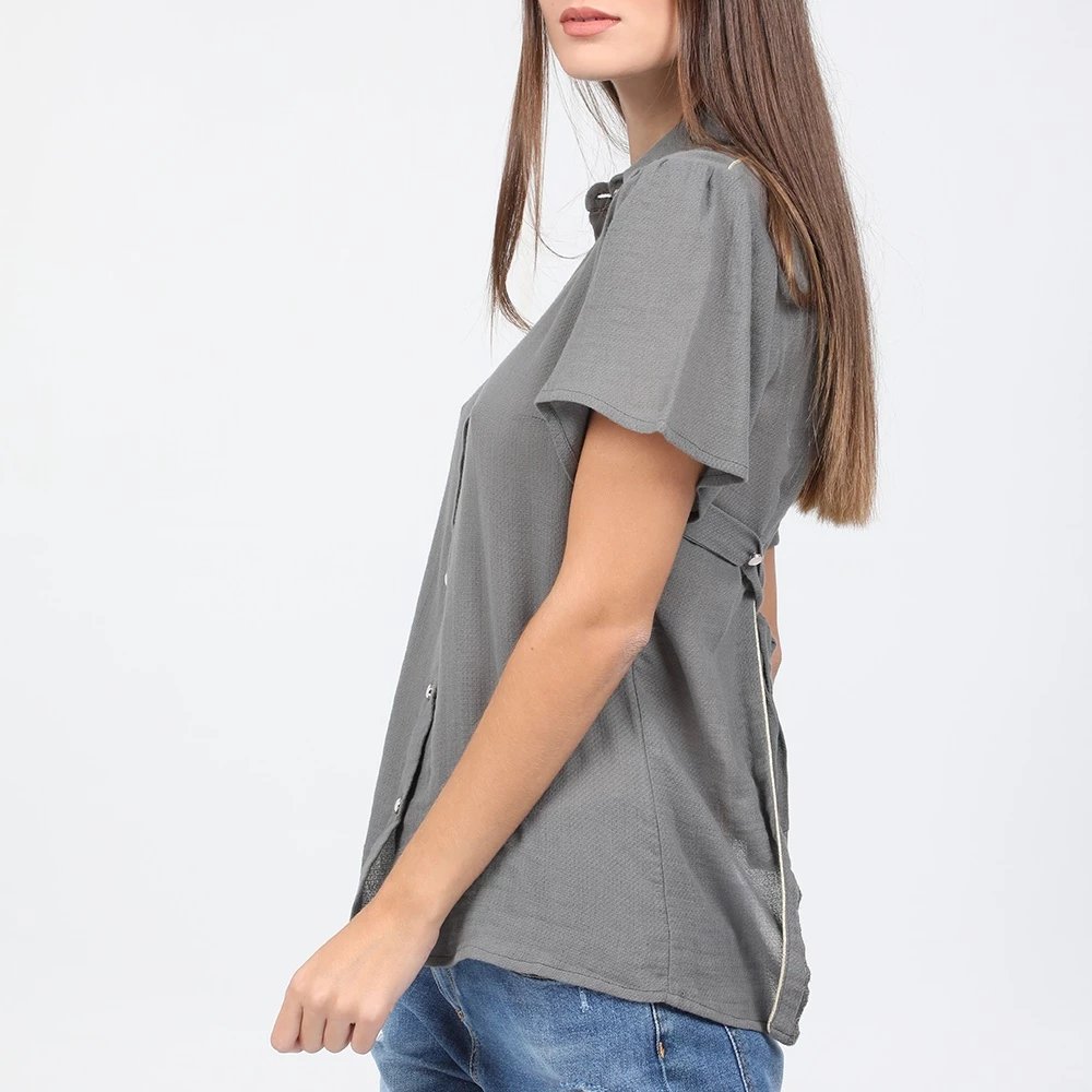 Γυναικείο πουκάμισο STAFF JEANS σε γκρι απόχρωση. Από βαμβακερή σύνθεση, με άνοιγμα στην πλάτη. Έχει κοντά μανίκια και κλασικό γιακά με μυτερές άκρες. Κλείνει με κουμπιά μπροστά.